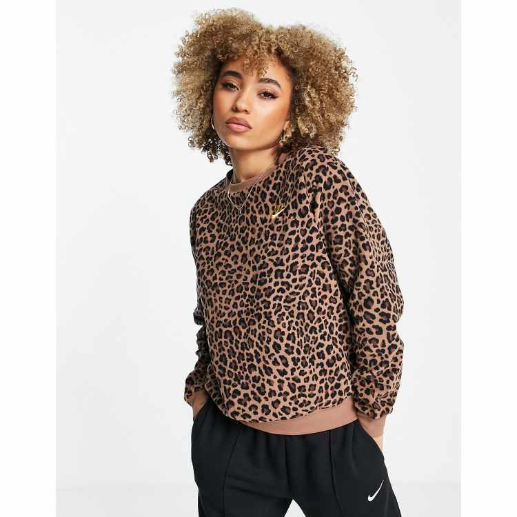Nike Animal Print Crew Neck Fleece Sweatshirt In Brown Asos